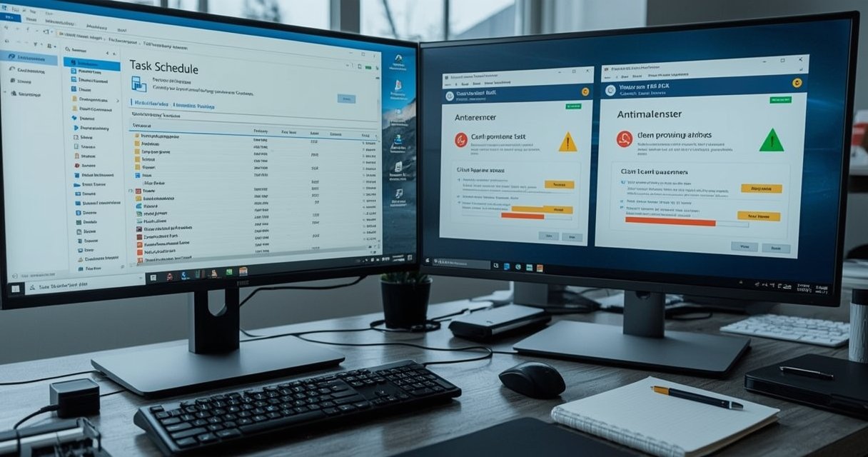 - Užduočių tvarkaraštyje atsiranda neaiški užduotis „Kotcatkcomksz“ ar panašiai pavadinta.